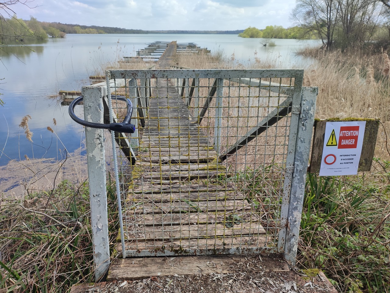 Avant de trouver une solution pour la remise en état, au 8/04/2023 devenu trop dangereux, le ponton de l’aire de repos n’est plus accessible.