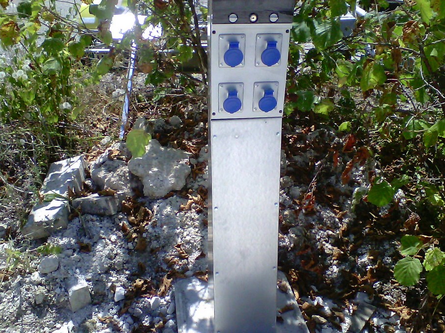 Après quelques journées de travaux, dans des conditions plutôt rudes, la fée électricité est de retour sur la zone. Les câbles sont enterrés et les bornes solidement fixées et réparties sur toute la zone.