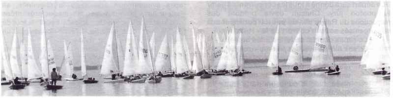 162 Lasers sur une ligne de départ, en Mars 1982, représentants plus de 30 clubs français, pour cette régate sélective aux championnats d’Europe