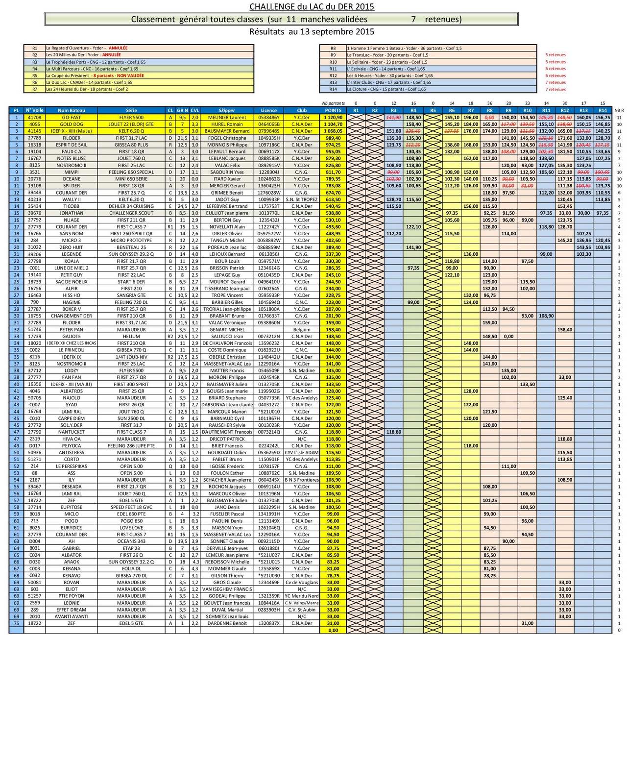 Résultats au 13 septembre 2015 après 11 manches validées (7 manches retenues)