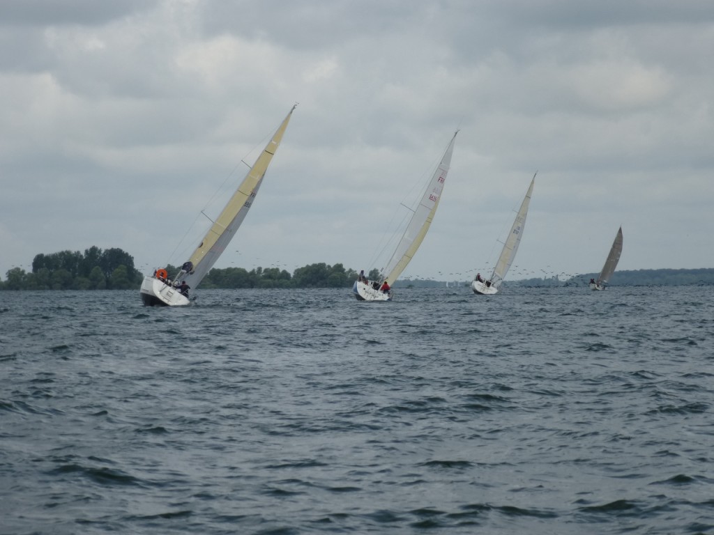 Par bonheur cela n’a pas entamé l’enthousiasme des équipages venus en nombre se frotter les étraves autours de quelques bouées. Et ils n’ont pas été déçus ; du vent , pas de pluie, et même du soleil
