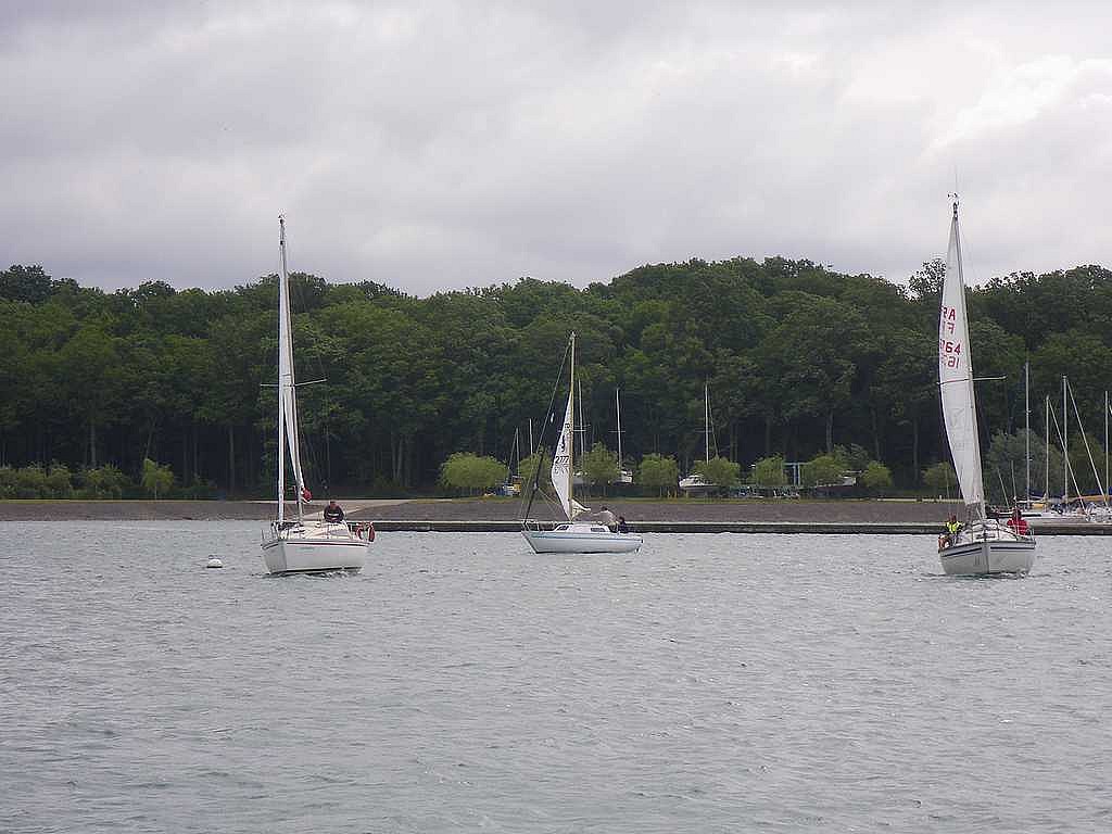 Avec 20 noeuds de vent et un temps plutôt maussade, seulement 6 équipages au départ, mais beaucoup plus à l’arrivée